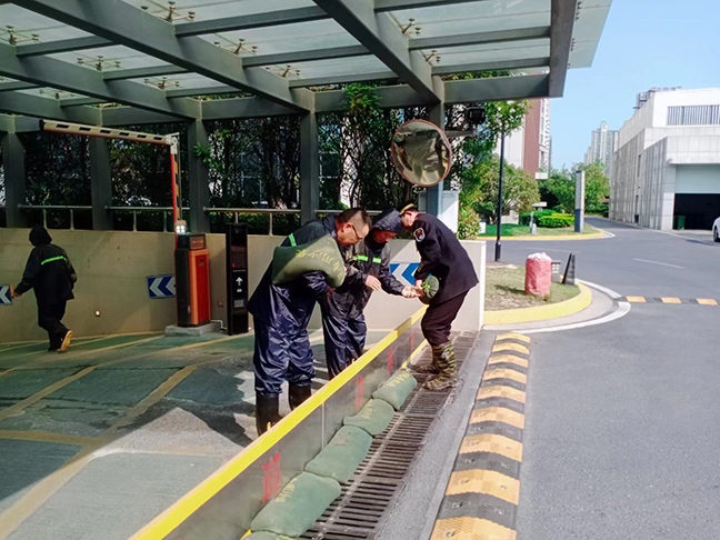 演練模擬持續(xù)暴雨導(dǎo)致地下車庫出現(xiàn)水情告急的情況。接到險情后,防汛應(yīng)急小組立即啟動應(yīng)急預(yù)案,及時疏散地下車庫內(nèi)的車輛,搬運(yùn)、安裝防洪擋板,有序壘砌防洪沙袋,并使用防水電源線啟動潛水泵進(jìn)行排水,及時清理積水區(qū)域。在搶險人員的共同努力下,險情迅速得到了控制,大家分工明確、配合默契,工作流程規(guī)范,安全保障措施到位,進(jìn)一步檢驗(yàn)了防汛搶險預(yù)案的實(shí)用性和可操作性,鍛煉了防汛搶險隊(duì)伍的組織能力、快速反應(yīng)能力,提高了實(shí)戰(zhàn)水平。