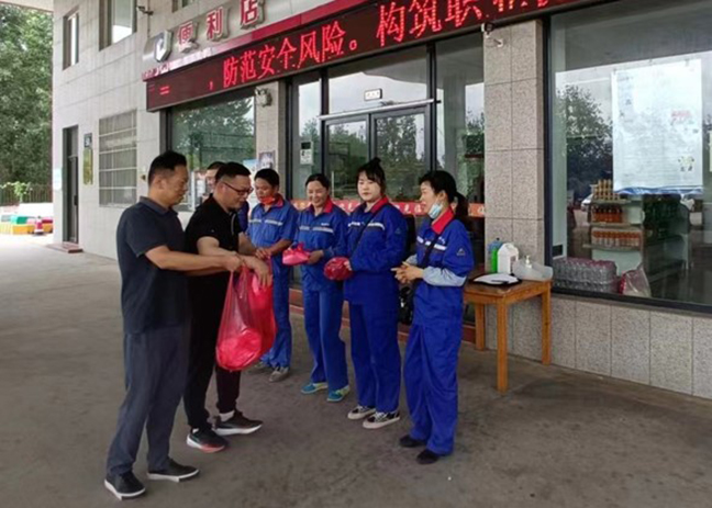 活動(dòng)中,物資集團(tuán)和新倫石化公司負(fù)責(zé)人一行來到大徐、金達(dá)加油站,為一線職工送上防暑降溫物品,關(guān)切詢問大家的日常工作情況,叮囑他們?cè)诟邷仄陂g要合理安排作業(yè)時(shí)間,注重勞逸結(jié)合,做好個(gè)人防護(hù)。隨后,物資集團(tuán)負(fù)責(zé)人詳細(xì)了解加油站經(jīng)營(yíng)銷售情況,并要求現(xiàn)場(chǎng)管理人員切實(shí)做好防暑降溫措施和防汛工作,加強(qiáng)對(duì)加油機(jī)、油罐區(qū)、配電室等設(shè)備設(shè)施的日常巡查,及時(shí)消除安全隱患,營(yíng)造平安穩(wěn)定的工作環(huán)境。