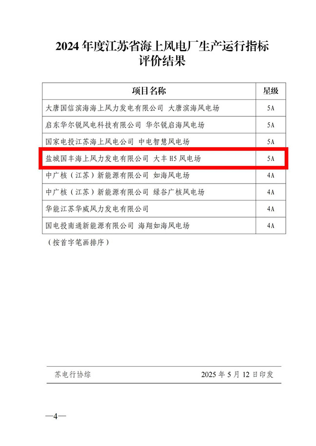 能力和高度協(xié)同的團(tuán)隊(duì)協(xié)作精神,獲評(píng)“江蘇省AAAAA級(jí)海上風(fēng)電場(chǎng)〞稱號(hào)。